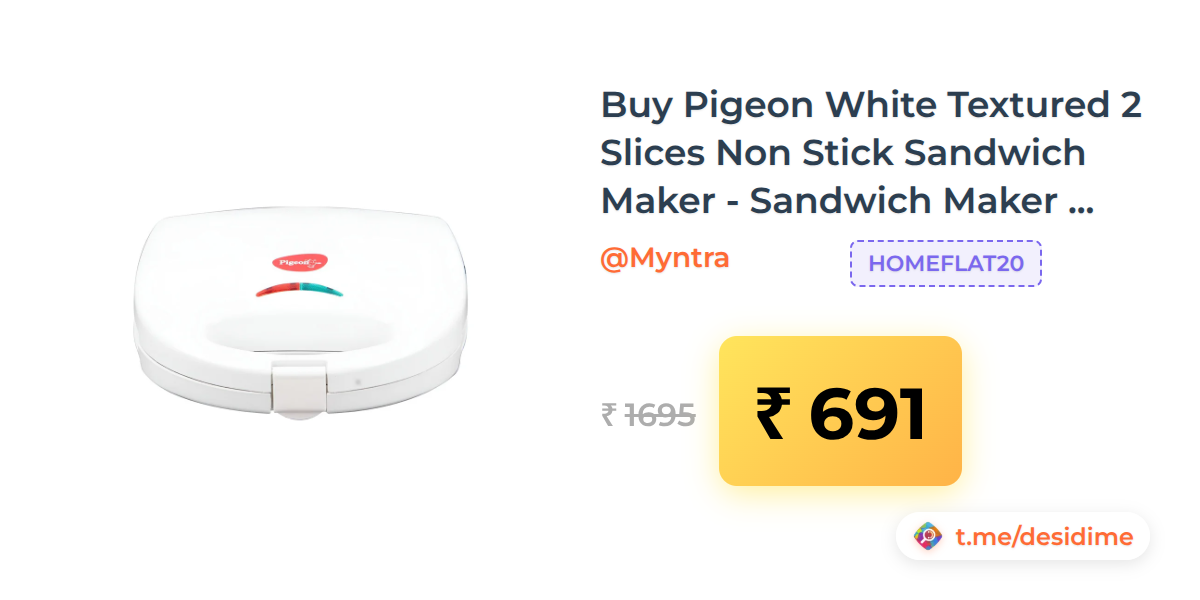 59% off on - Buy Pigeon White Textured 2 Slices Non Stick Sandwich Maker - Sandwich Maker | Myntra - Rs. 691