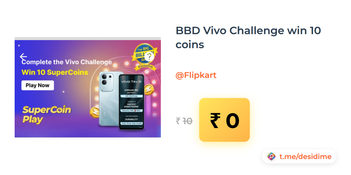 100% off on - BBD Vivo Challenge win 10 coins - Rs. 0