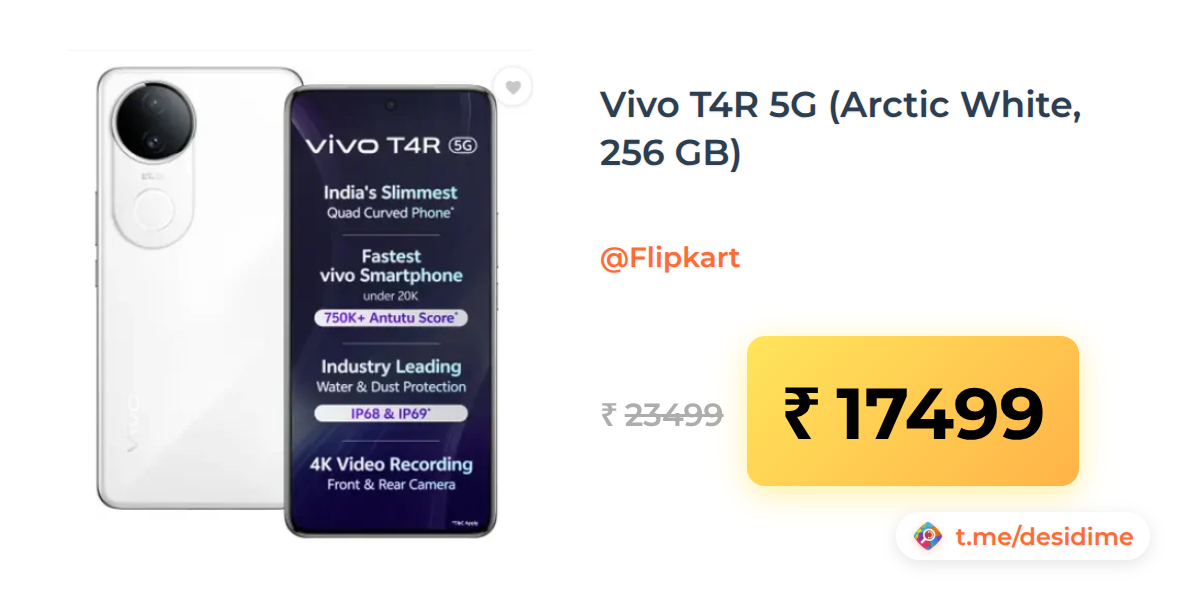 26% off on - Vivo T4R 5G (Arctic White, 256 GB) - Rs. 17499