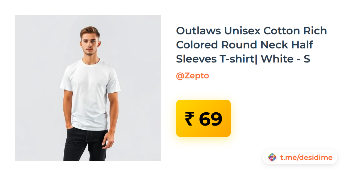 94% off on - Outlaws Unisex Cotton Rich Colored Round Neck Half Sleeves T-shirt| White - S - Rs. 69