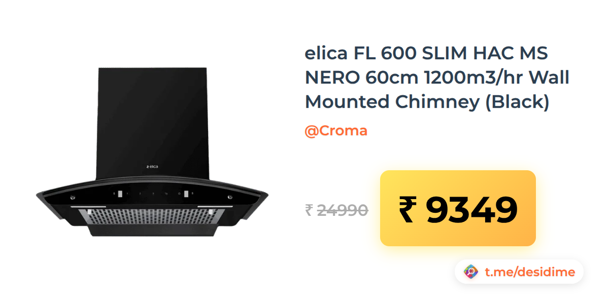 63% off on - elica FL 600 SLIM HAC MS NERO 60cm 1200m3/hr Wall Mounted Chimney (Black) - Rs. 9349
