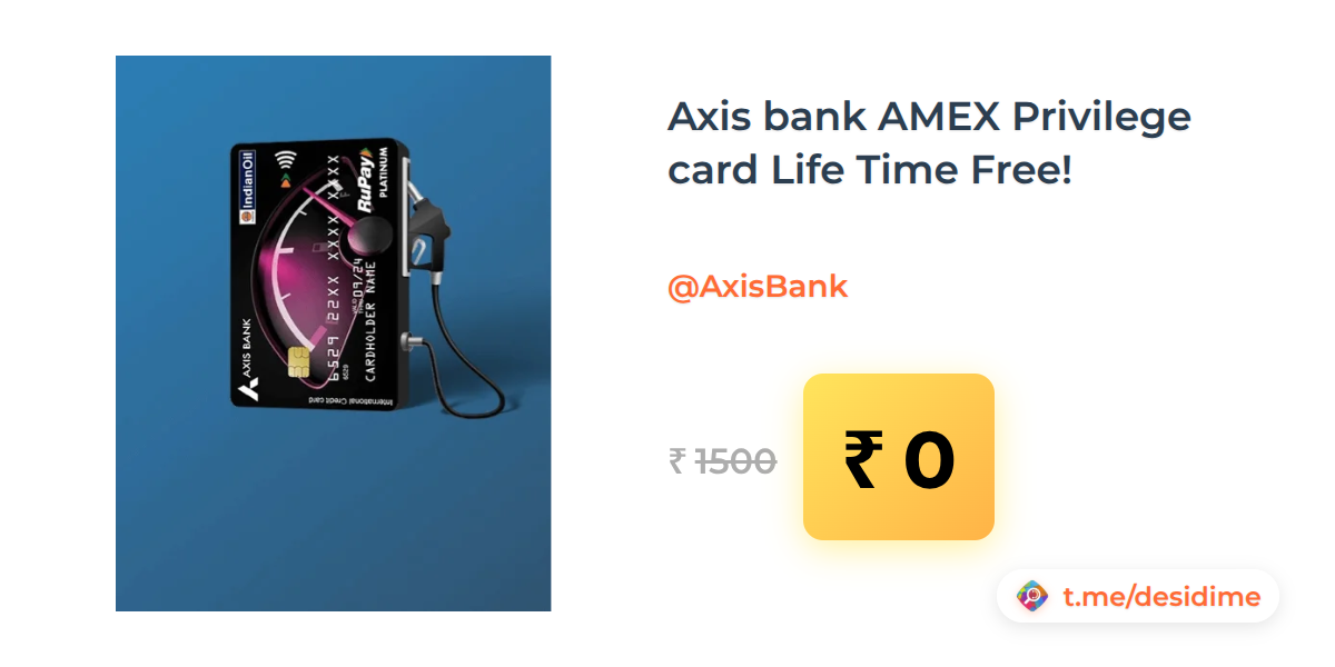 100% off on - Axis bank AMEX Privilege card Life Time Free! - Rs. 0