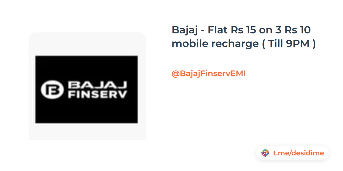 Bajaj - Flat Rs 15 on 3 Rs 10 mobile recharge ( Till 9PM )