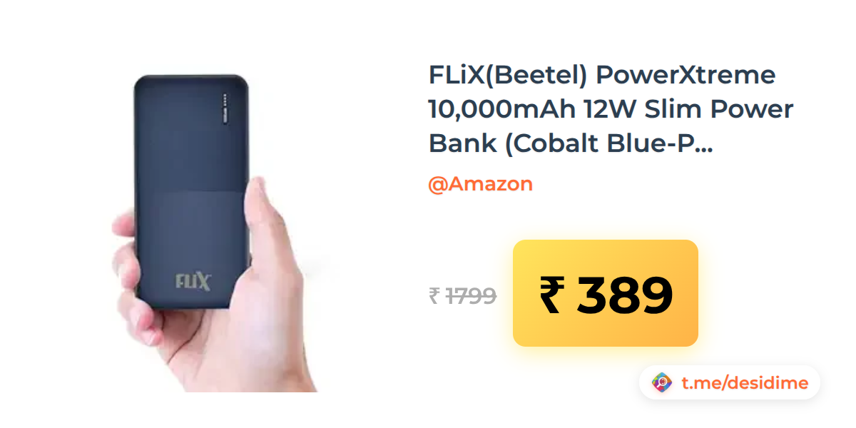 78% off on - FLiX(Beetel) PowerXtreme 10,000mAh 12W Slim Power Bank (Cobalt Blue-P10) - Rs. 389