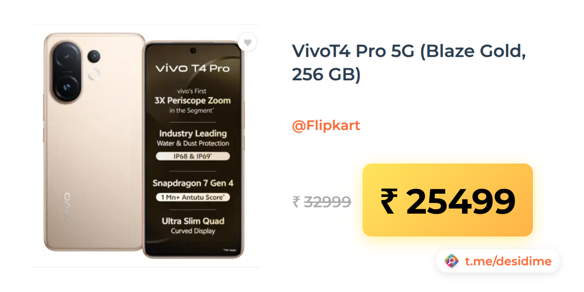 23% off on - VivoT4 Pro 5G (Blaze Gold, 256 GB) - Rs. 25499