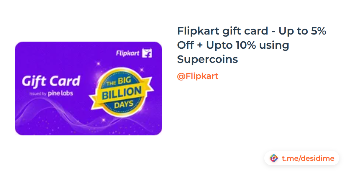 Flipkart gift card - Up to 5% Off + Upto 10% using Supercoins