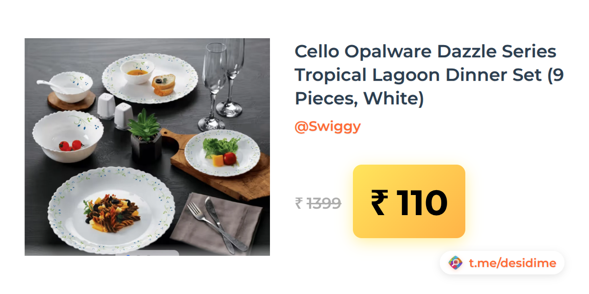 92% off on - Cello Opalware Dazzle Series Tropical Lagoon Dinner Set (9 Pieces, White) - Rs. 110