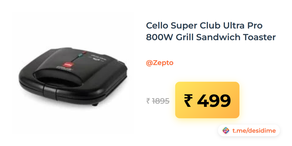 74% off on - Cello Super Club Ultra Pro 800W Grill Sandwich Toaster - Rs. 499