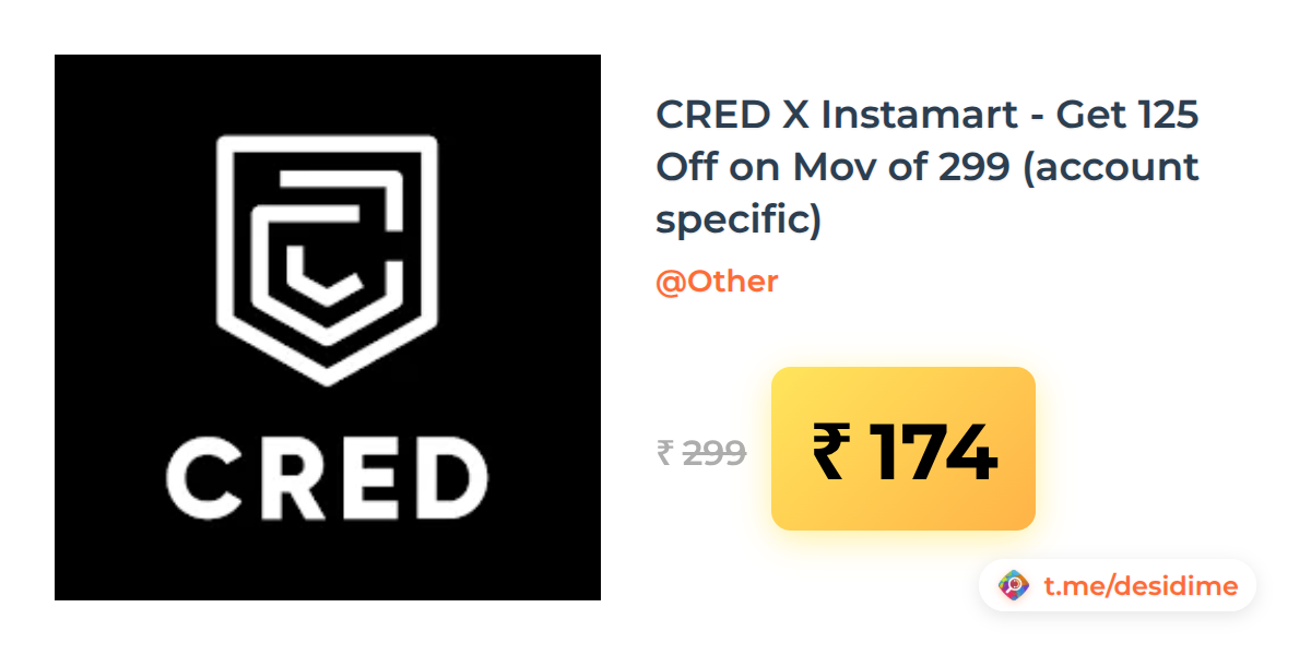 42% off on - CRED X Instamart - Get 125 Off on Mov of 299 (account specific) - Rs. 174