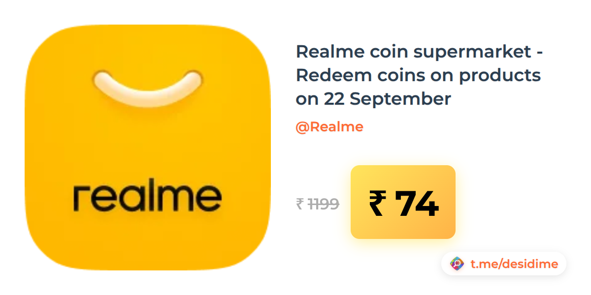 94% off on - Realme coin supermarket - Redeem coins on products on 22 September - Rs. 74