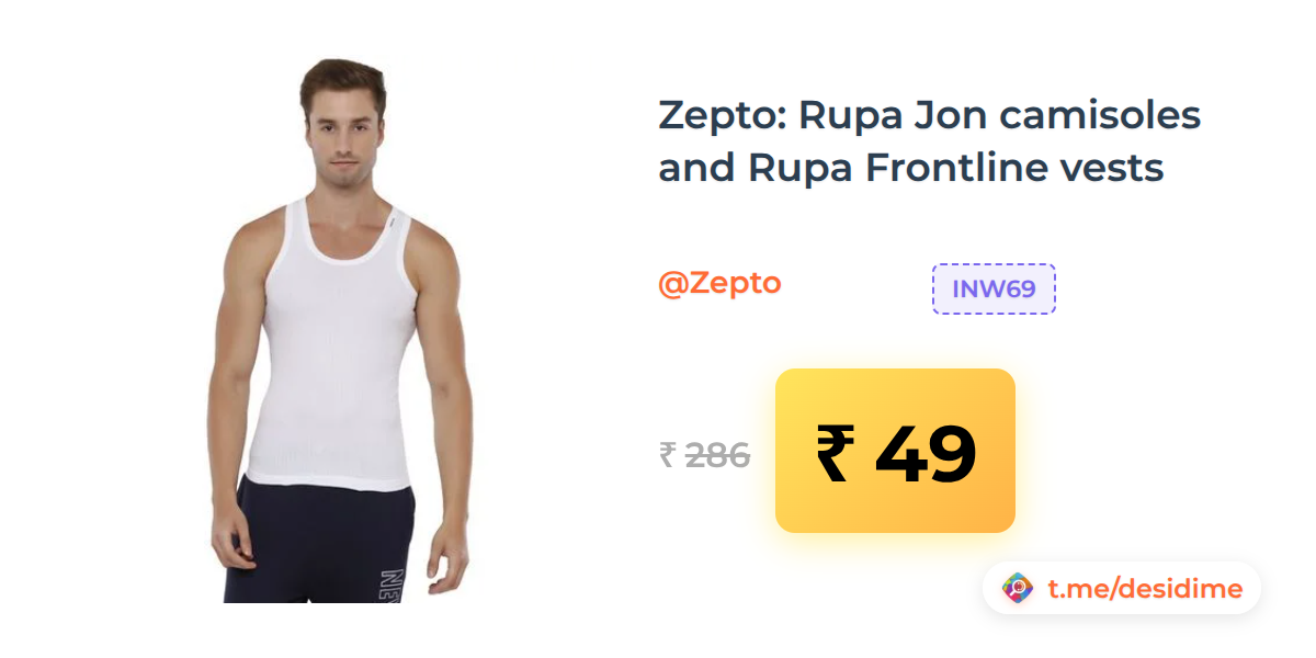 83% off on - Zepto: Rupa Jon camisoles and Rupa Frontline vests - Rs. 49