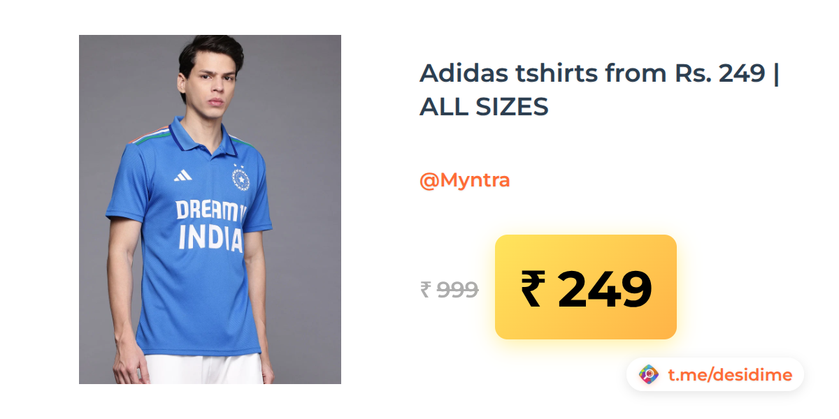 75% off on - Adidas tshirts from Rs. 249 | ALL SIZES - Rs. 249