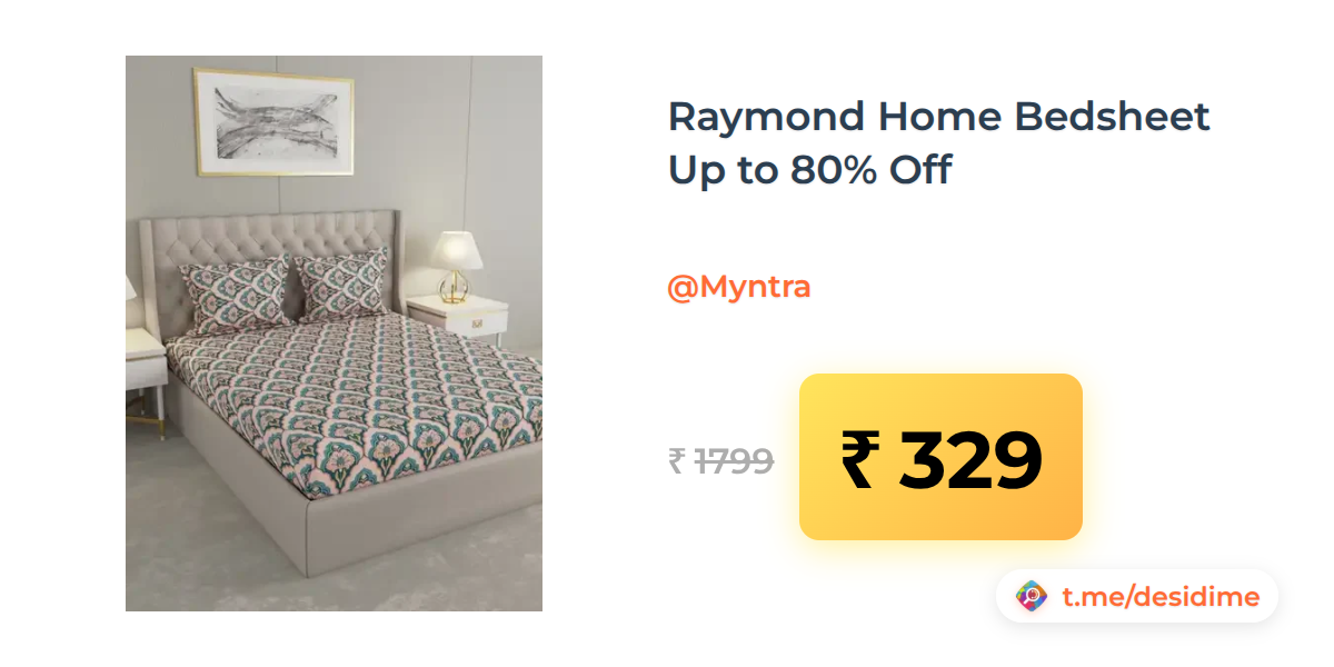 82% off on - Raymond Home Bedsheet Up to 80% Off - Rs. 329