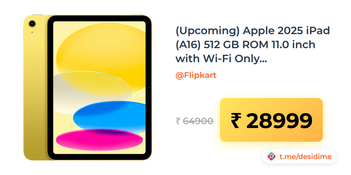 55% off on - (Upcoming) Apple 2025 iPad (A16) 512 GB ROM 11.0 inch with Wi-Fi Only (Yellow) - Rs. 28999