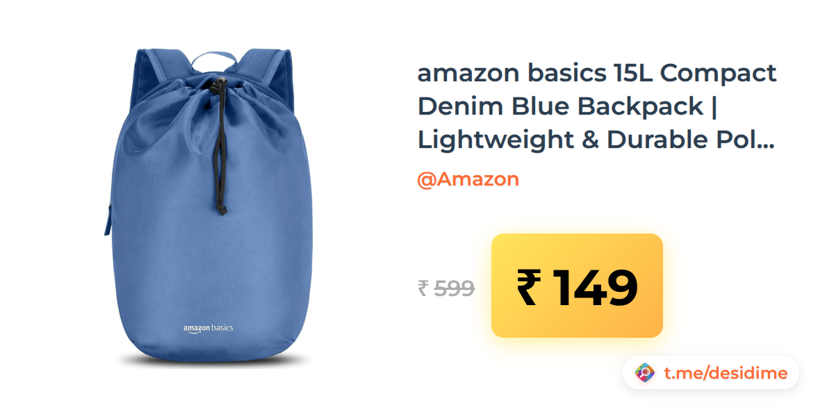 75% off on - amazon basics 15L Compact Denim Blue Backpack | Lightweight & Durable Polyester | - Rs. 149