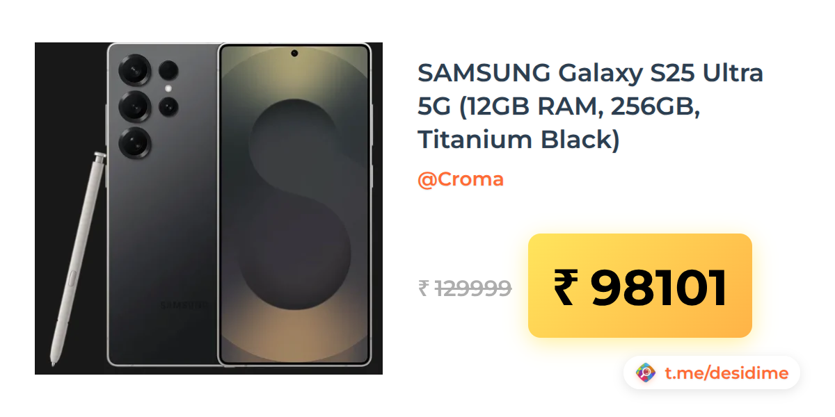 25% off on - SAMSUNG Galaxy S25 Ultra 5G (12GB RAM, 256GB, Titanium Black) - Rs. 98101