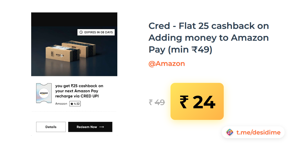51% off on - Cred - Flat 25 cashback on Adding money to Amazon Pay (min ₹49) - Rs. 24