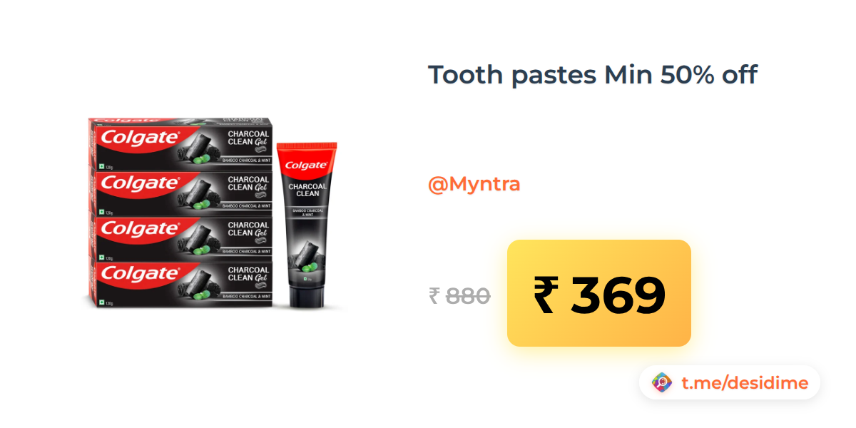 58% off on - Tooth pastes Min 50% off - Rs. 369