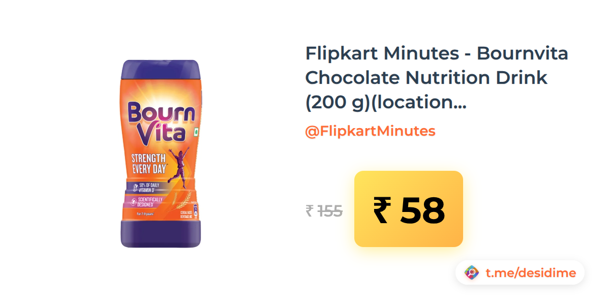 63% off on - Flipkart Minutes - Bournvita Chocolate Nutrition Drink (200 g)(location specific) - Rs. 58