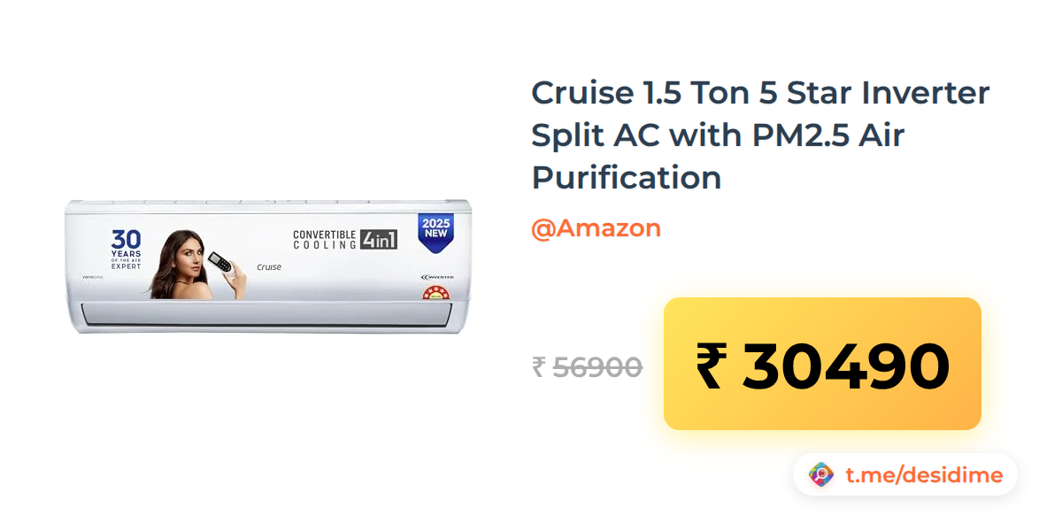 46% off on - Cruise 1.5 Ton 5 Star Inverter Split AC with PM2.5 Air Purification - Rs. 30490