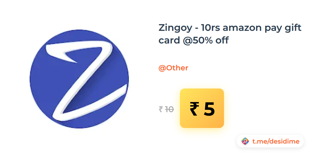 50% off on - Zingoy - 10rs amazon pay gift card @50% off - Rs. 5