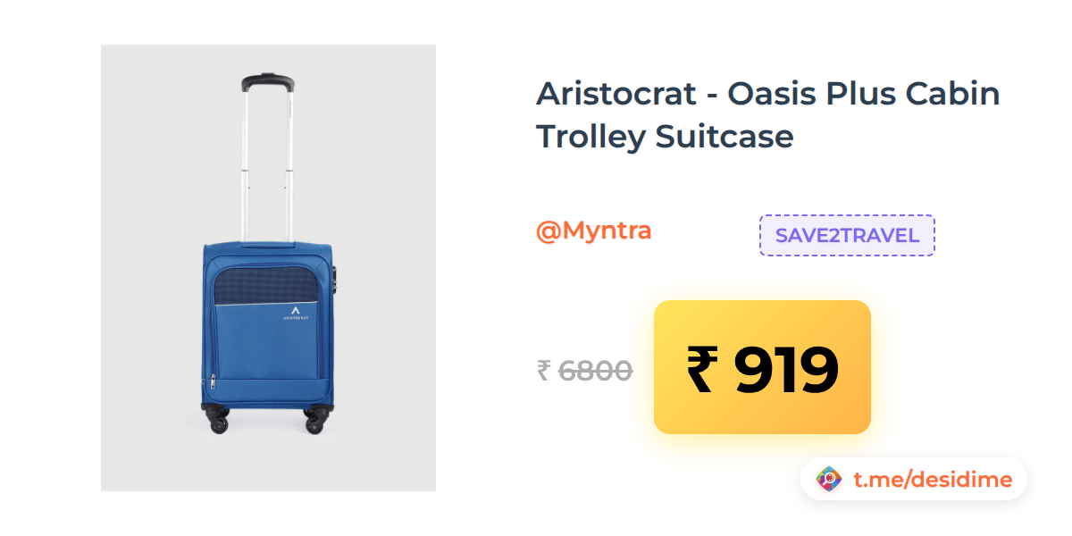86% off on - Aristocrat - Oasis Plus Cabin Trolley Suitcase - Rs. 919