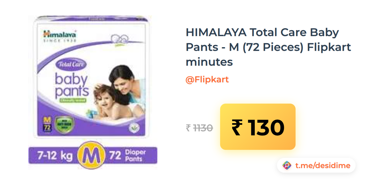 88% off on - HIMALAYA Total Care Baby Pants - M (72 Pieces) Flipkart minutes - Rs. 130