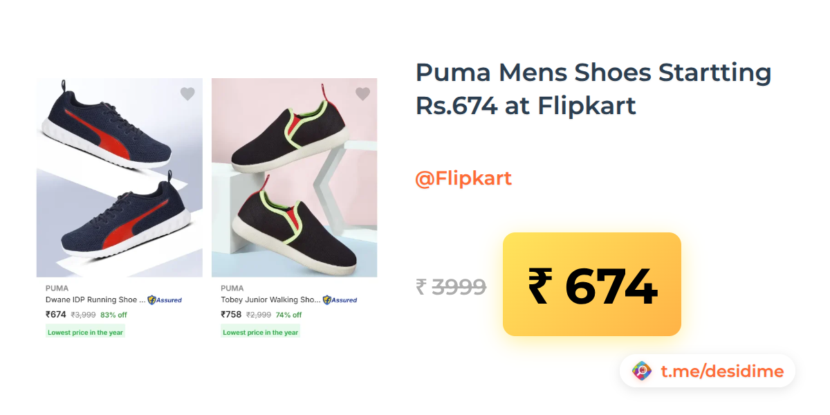 83% off on - Puma Mens Shoes Startting Rs.674 at Flipkart - Rs. 674