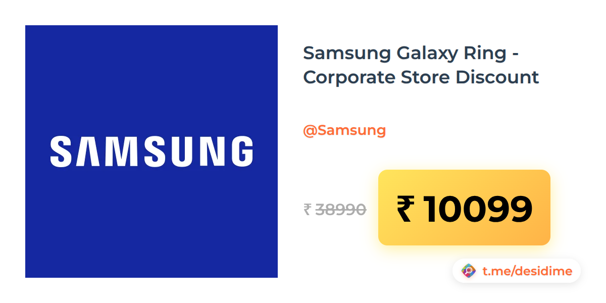 74% off on - Samsung Galaxy Ring - Corporate Store Discount - Rs. 10099