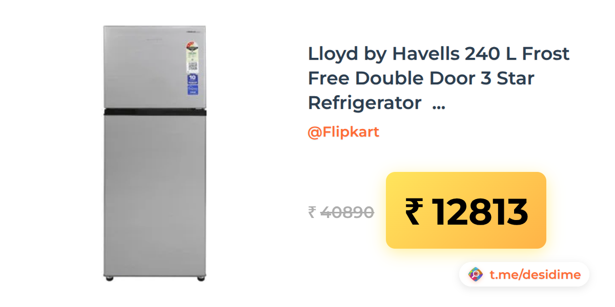 69% off on - Lloyd by Havells 240 L Frost Free Double Door 3 Star Refrigerator (Silver, GLFF273AMSC1PC) [ICICI/AXIS Card] - Rs. 12813