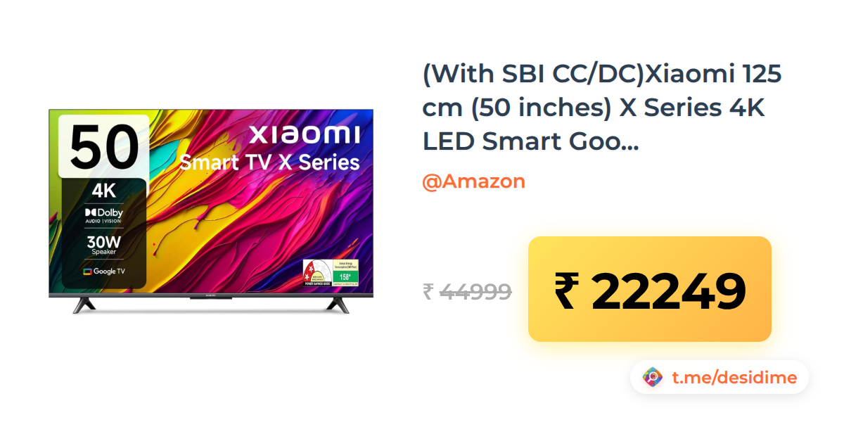 51% off on - (With SBI CC/DC)Xiaomi 125 cm (50 inches) X Series 4K LED Smart Google TV L50MA-AUIN (Black) - Rs. 22249