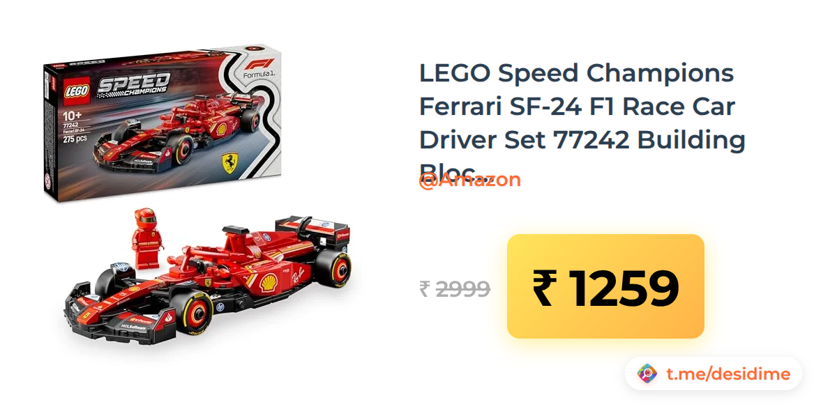 58% off on - LEGO Speed Champions Ferrari SF-24 F1 Race Car Driver Set 77242 Building Blocks Toys - Rs. 1259