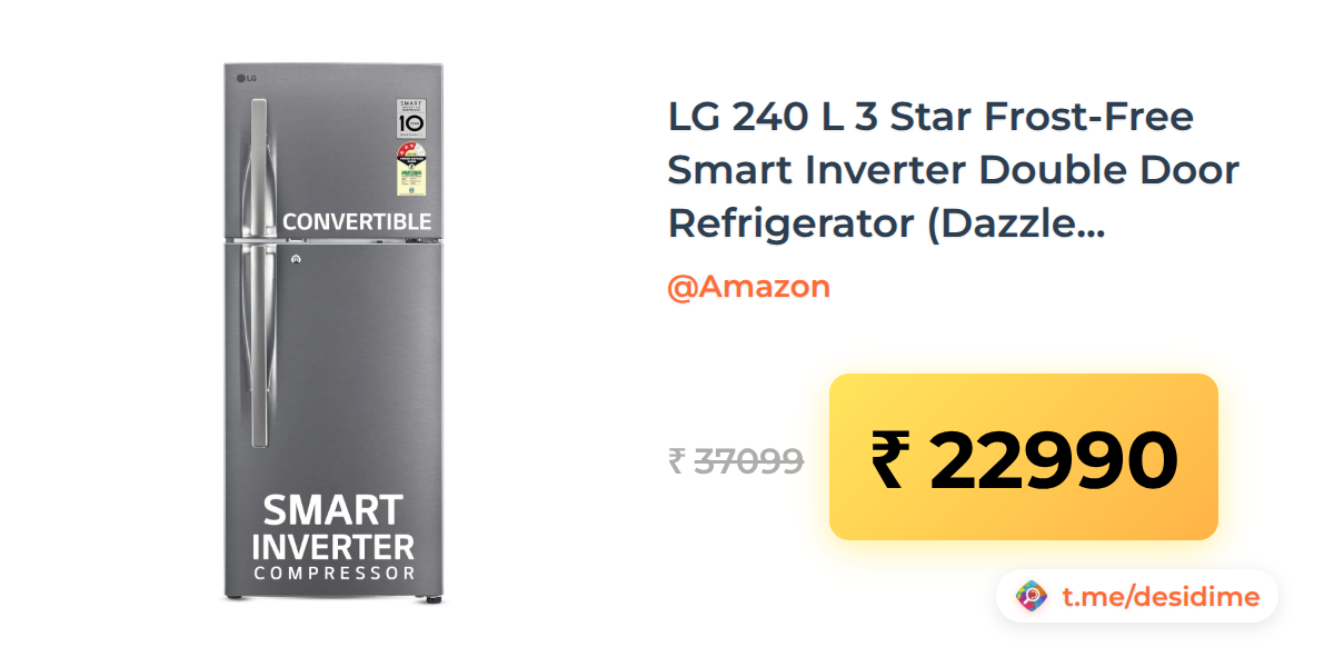 38% off on - LG 240 L 3 Star Frost-Free Smart Inverter Double Door Refrigerator (Dazzle Steel) - Rs. 22990