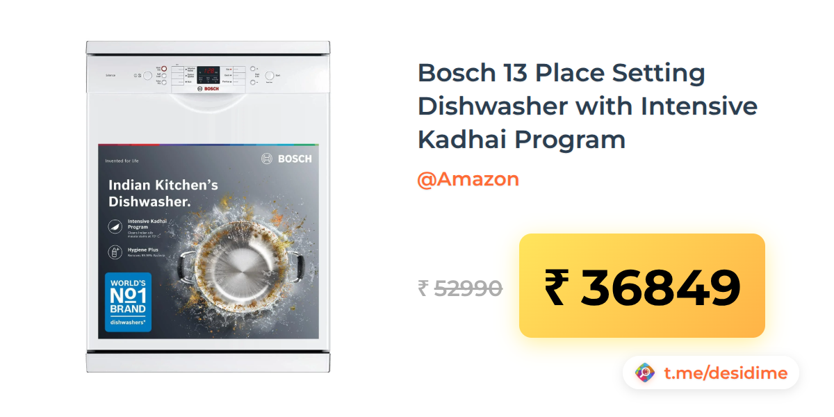 30% off on - Bosch 13 Place Setting Dishwasher with Intensive Kadhai Program - Rs. 36849