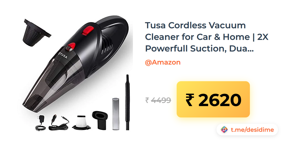42% off on - Tusa Cordless Vacuum Cleaner for Car & Home | 2X Powerfull Suction, Dual Mode Battery 6000mAh & 12V DC Car Port | High Power Portable Lightweight Wireless Vacuum, Rechargeable (V1) (Black) - Rs. 2620