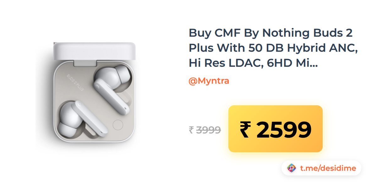 35% off on - Buy CMF By Nothing Buds 2 Plus With 50 DB Hybrid ANC, Hi Res LDAC, 6HD Mics, 61.5Hrs Bluetooth - Rs. 2599