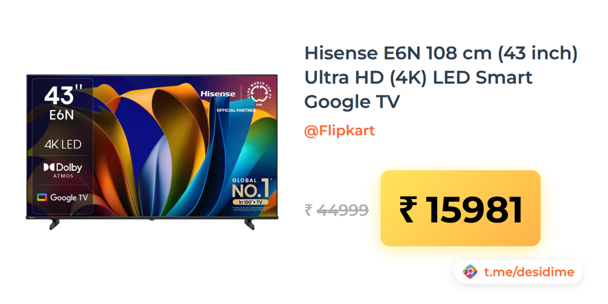 64% off on - Hisense E6N 108 cm (43 inch) Ultra HD (4K) LED Smart Google TV - Rs. 15981