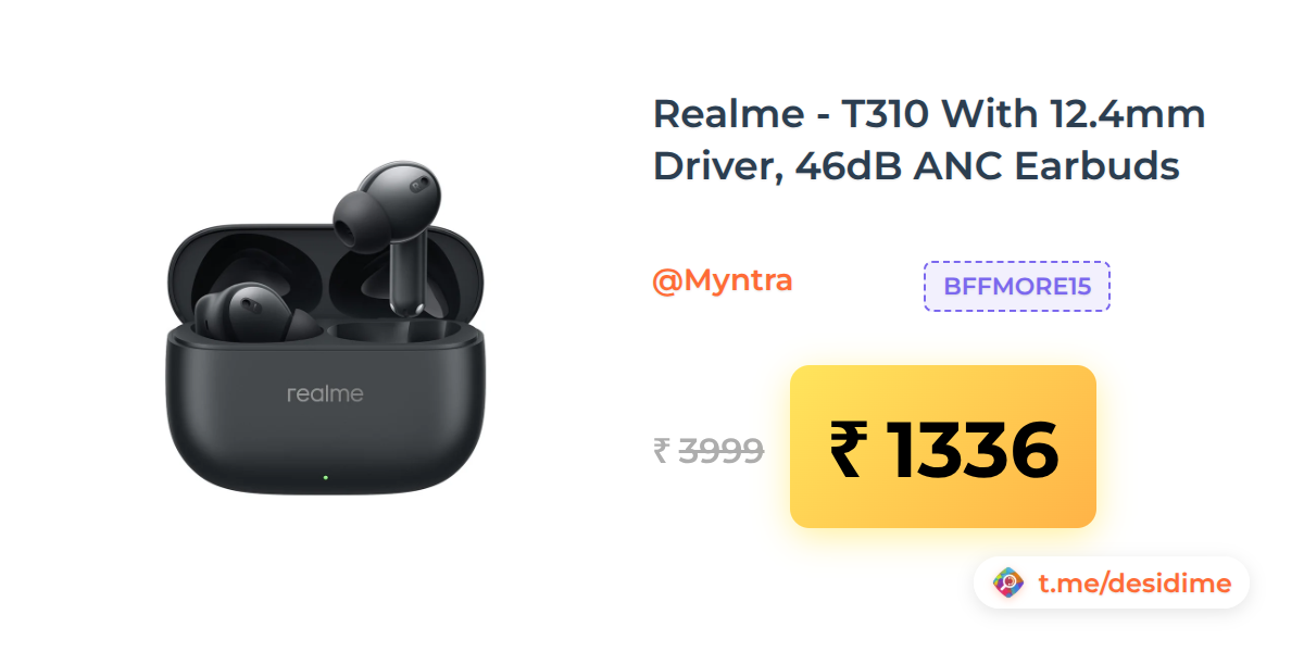 67% off on - Realme - T310 With 12.4mm Driver, 46dB ANC Earbuds - Rs. 1336