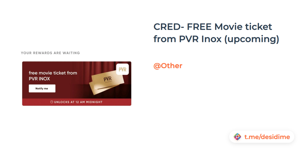 CRED- FREE Movie ticket from PVR Inox (upcoming)