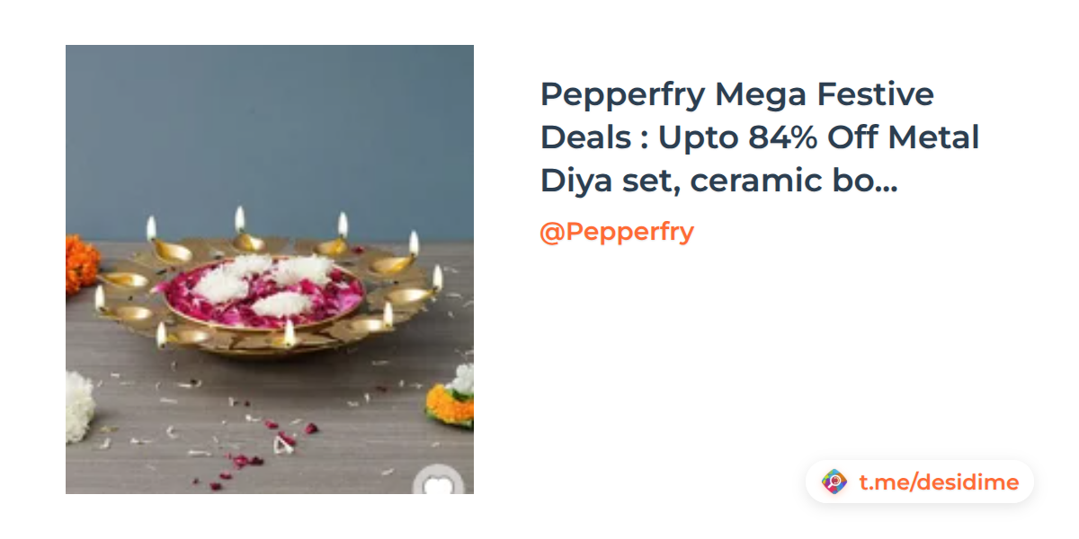 Pepperfry Mega Festive Deals : Upto 84% Off Metal Diya set, ceramic bowls & more starting from ₹89