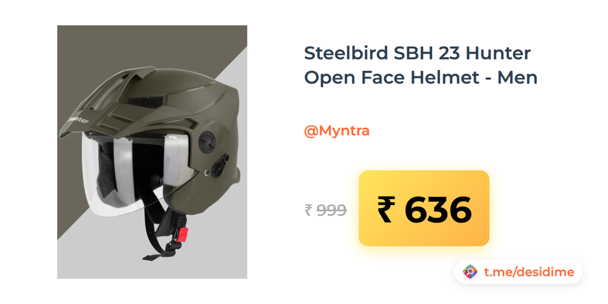 36% off on - Steelbird SBH 23 Hunter Open Face Helmet - Men - Rs. 636