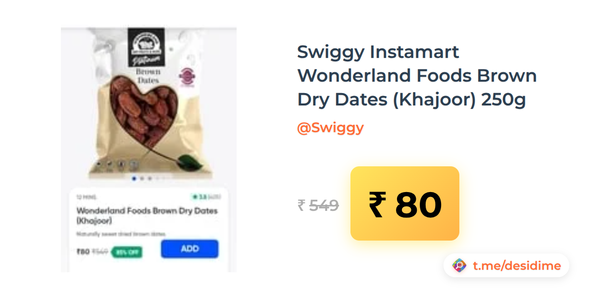 85% off on - Swiggy Instamart Wonderland Foods Brown Dry Dates (Khajoor) 250g - Rs. 80