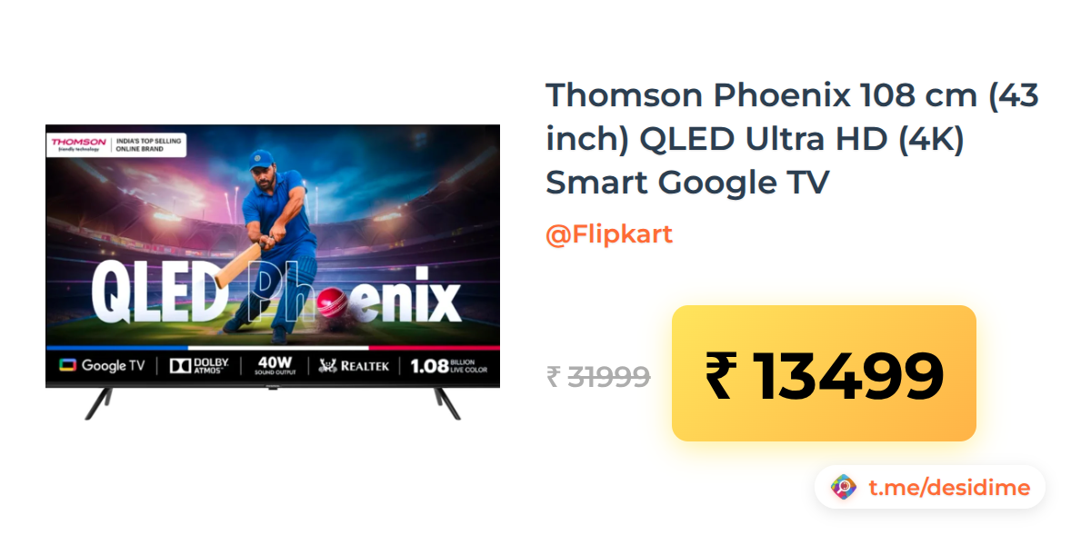 58% off on - Thomson Phoenix 108 cm (43 inch) QLED Ultra HD (4K) Smart Google TV - Rs. 13499