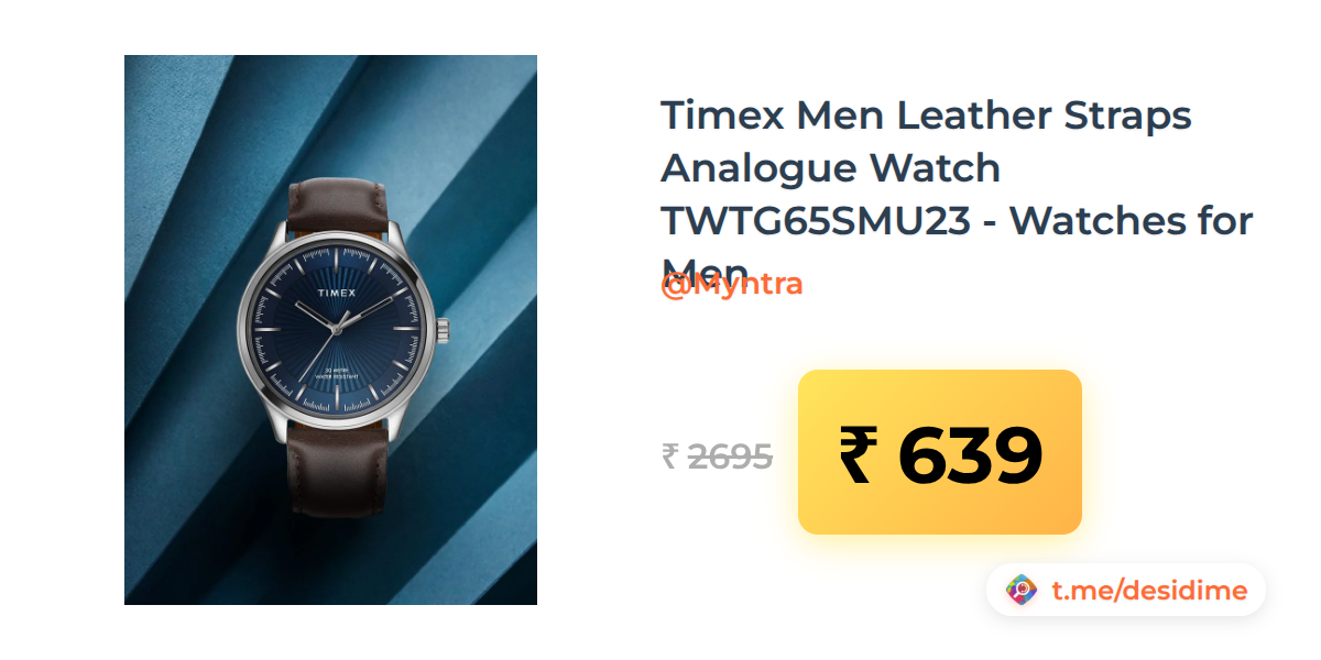76% off on - Timex Men Leather Straps Analogue Watch TWTG65SMU23 - Watches for Men - Rs. 639