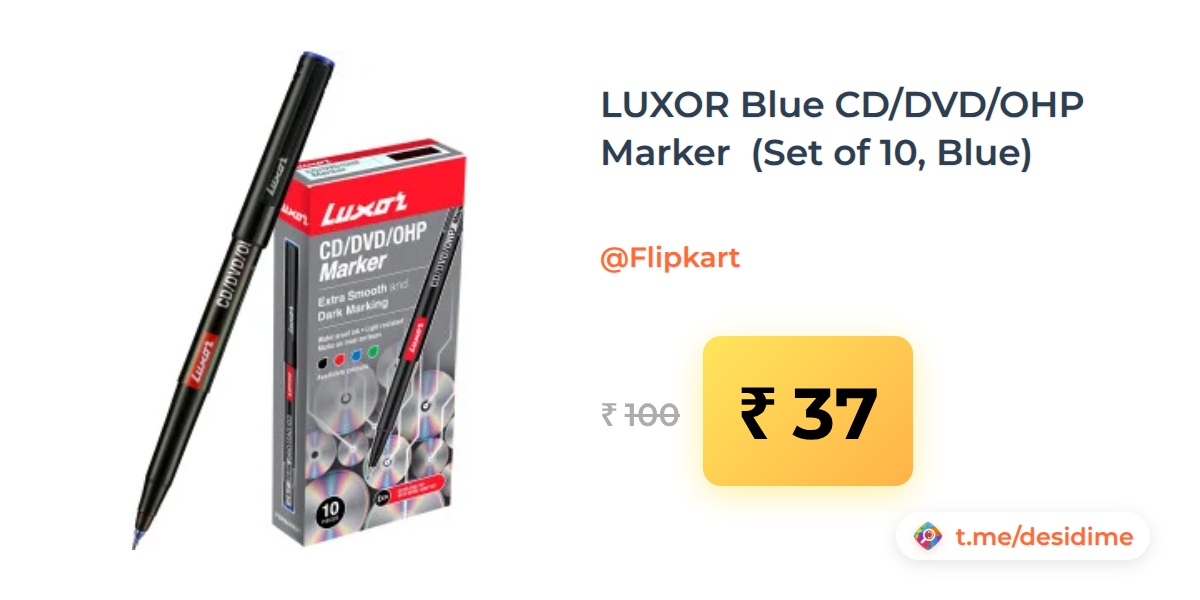 63% off on - LUXOR Blue CD/DVD/OHP Marker  (Set of 10, Blue) - Rs. 37