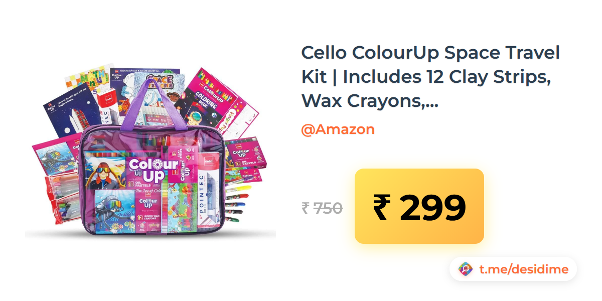 60% off on - Cello ColourUp Space Travel Kit | Includes 12 Clay Strips, Wax Crayons, Oil Pastels, Coloured Pens - Rs. 299