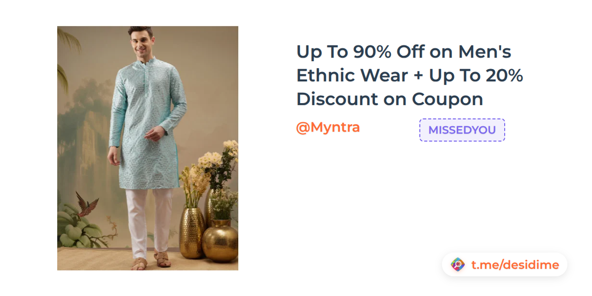 Up To 90% Off on Men's Ethnic Wear + Up To 20% Discount on Coupon
