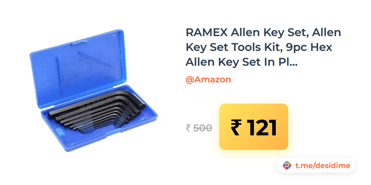 76% off on - RAMEX Allen Key Set, Allen Key Set Tools Kit, 9pc Hex Allen Key Set In Plastic Box Packet Size Allen Key Set Allen Keys - Rs. 121