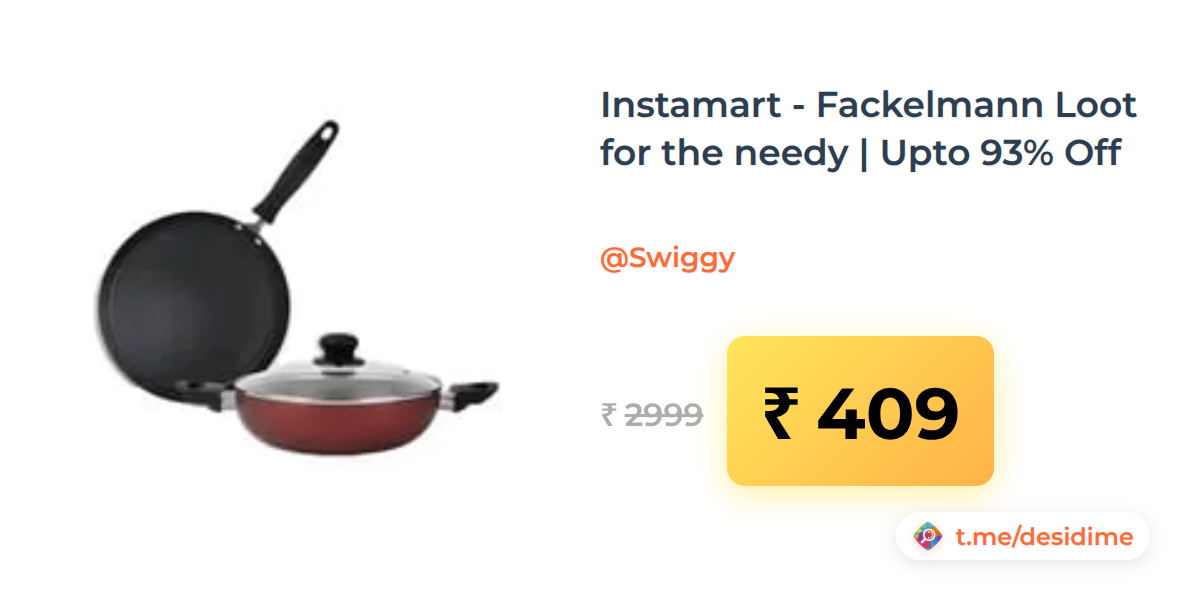 86% off on - Instamart - Fackelmann Loot for the needy | Upto 93% Off - Rs. 409