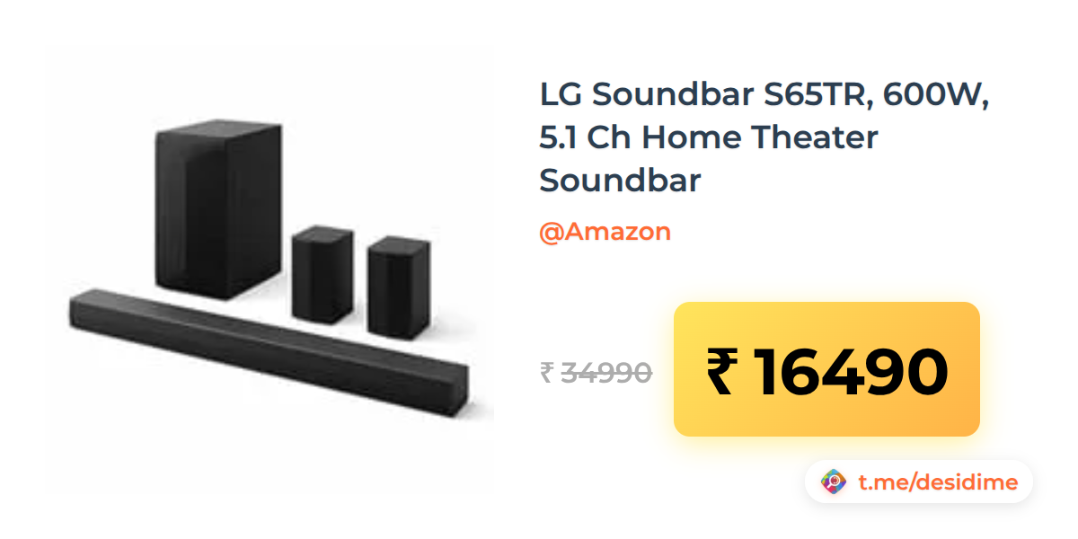53% off on - LG Soundbar S65TR, 600W, 5.1 Ch Home Theater Soundbar - Rs. 16490